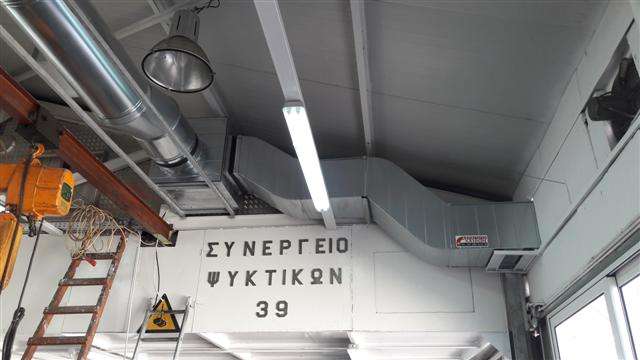 Στο συνεργείο ψυκτικών εγκαταστάσεων του Ναυστάθμου Κρήτης, εγκαταστήσατε δίκτυο εξαερισμού από στρογγυλής διατομής γαλβανιζέ ελάσματα, εντός του χώρου εργασίας.