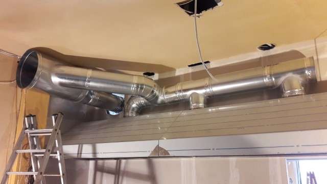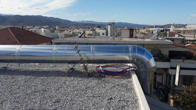 Κατασκευή και τοποθέτηση δικτύου αεραγωγών απαγωγής καυσαερίων κουζίνας στο εστιατόριο 'Ο Kουμπές' στα Χανιά.