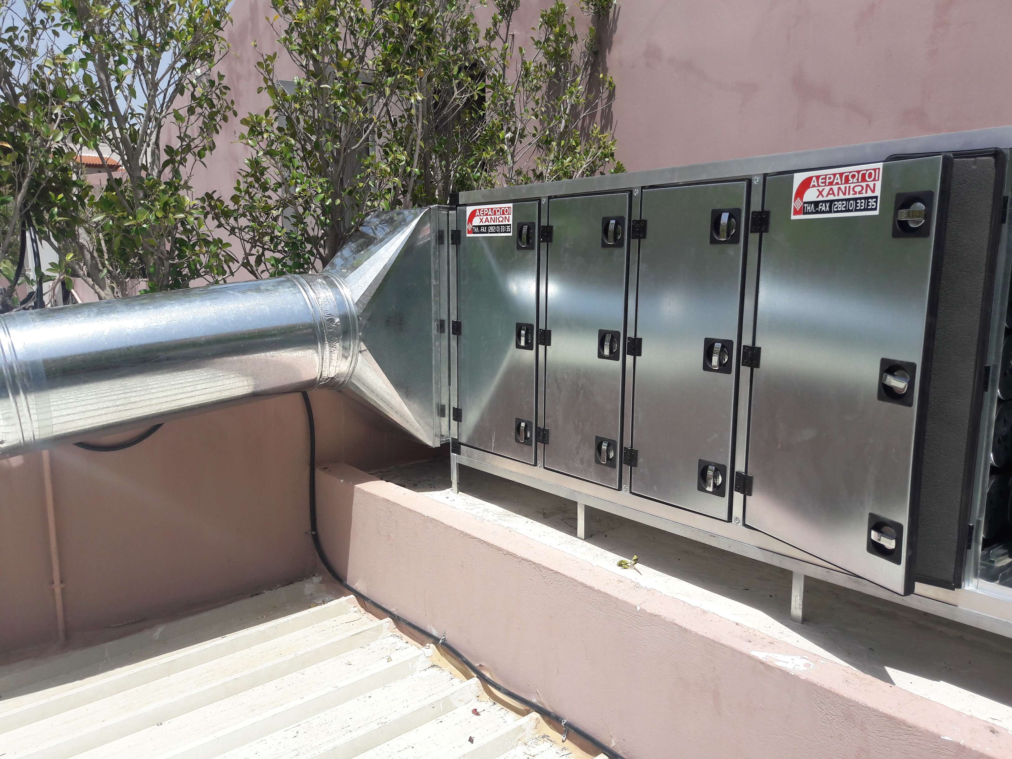 Εφαρμογή συστοιχίας απόσμησης καυσαερίων απολύτων φίλτρων ενεργού άνθρακα στηv κεντρική κουζίνα του ξενοδοχείου Stellina Royal (5 αστέρων) στην χρυσή ακτή Χανίων