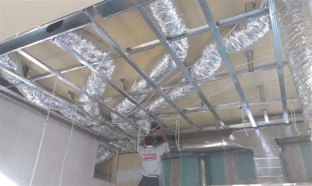 Παραθέτουμε δείγμα φωτογραφιών από εφαρμογή δικτύου κλιματισμού εξαερισμού σε εστιατόριο στην παλιά πόλη. Χρησιμοποιήθηκαν εύκαμπτοι μονωμένοι οδευτές με κουτιά στομίων για τον κλιματισμό και στρογγυλής διατομής αγωγοί για την χοάνη απαγωγής καυσαερίων.