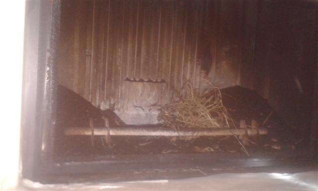 Και σε άλλη καμινάδα τζακιού, βρέθηκε εντός του περιστρεφόμενου καπέλου και στην καμινάδα μια φωλιά πουλιού, η οποία βεβαίως και απομακρύνθηκε. Παραθέτουμε και τα κατάλοιπα μετά τον καθαρισμό εντός της εστίας.