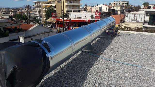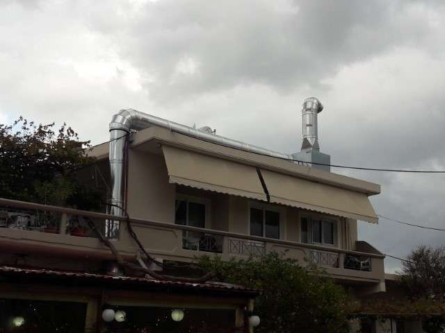Κατασκευή και τοποθέτηση δικτύου αεραγωγών απαγωγής καυσαερίων κουζίνας στο εστιατόριο 'Ο Kουμπές' στα Χανιά.